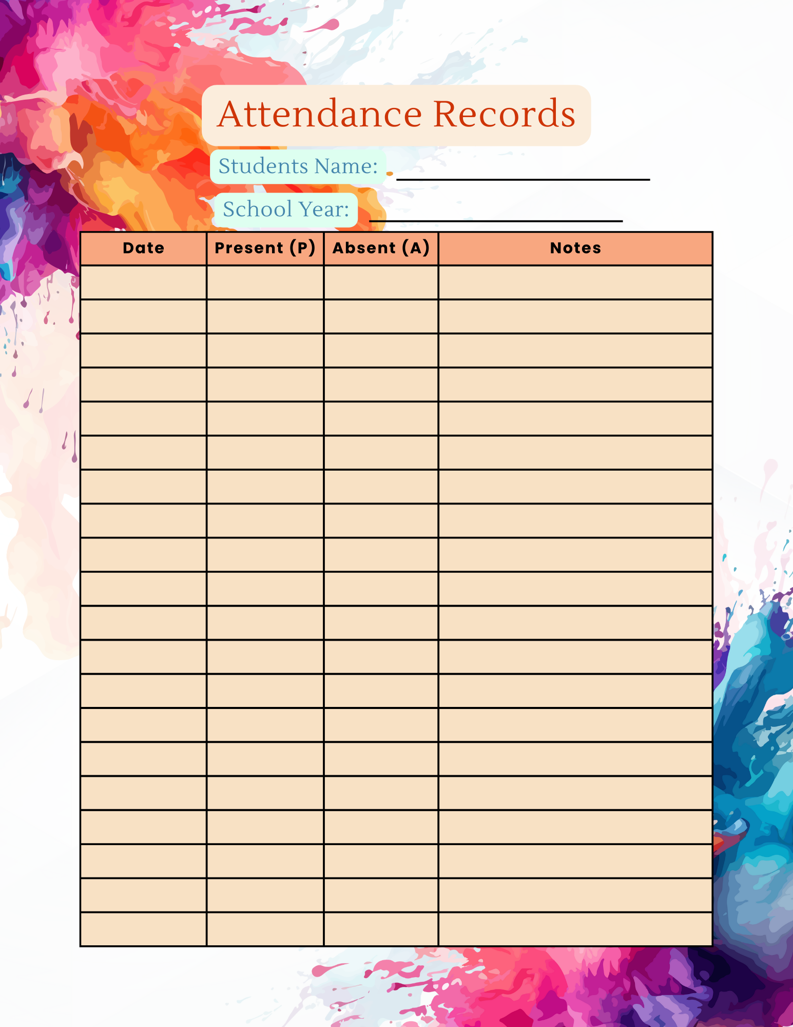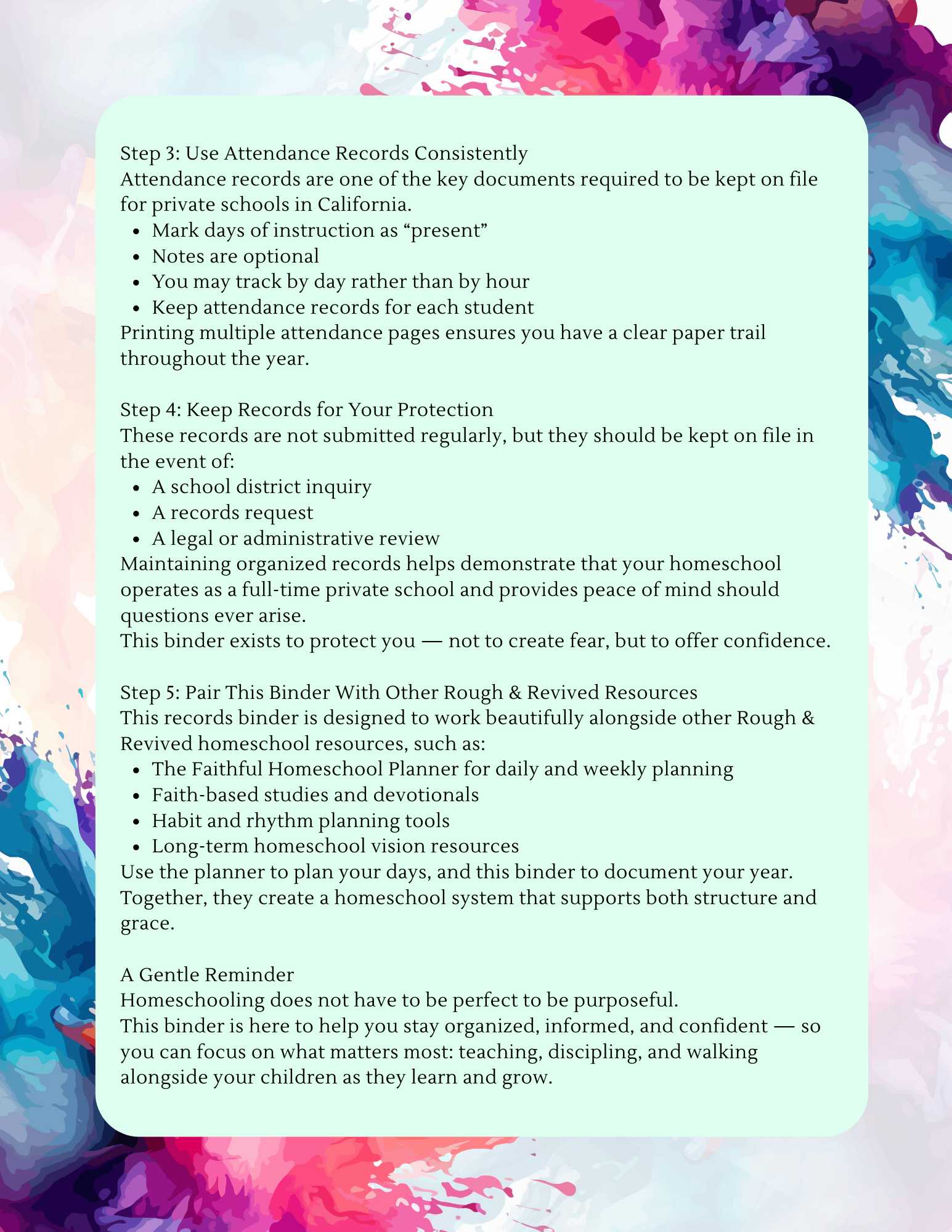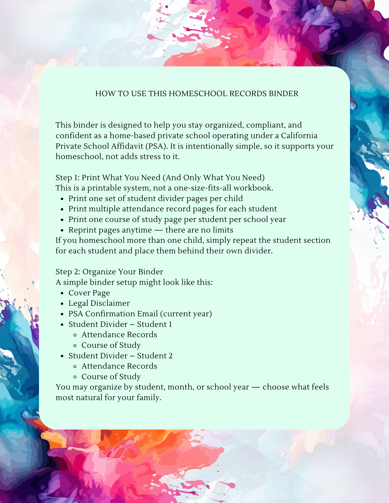 Be the first to review “Homeschool Record Keeping Binder Printable | Color Splash | PSA Compliant Attendance & Course of Study Pages | Editable Homeschool Records PDF”