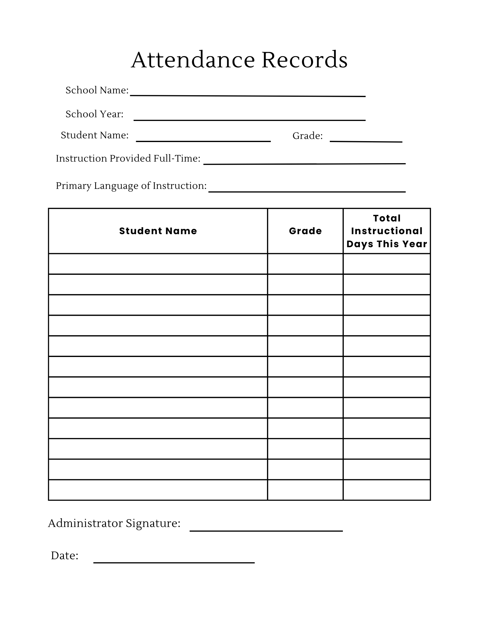 This homeschool records system includes PSA-compliant attendance logs, course of study pages, administrator documentation, and student information sheets — all formatted in multiple beautiful design styles while keeping the same legally structured layout.