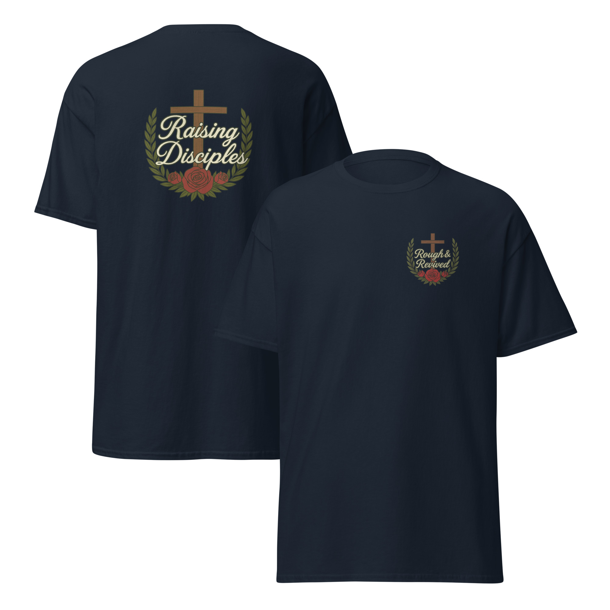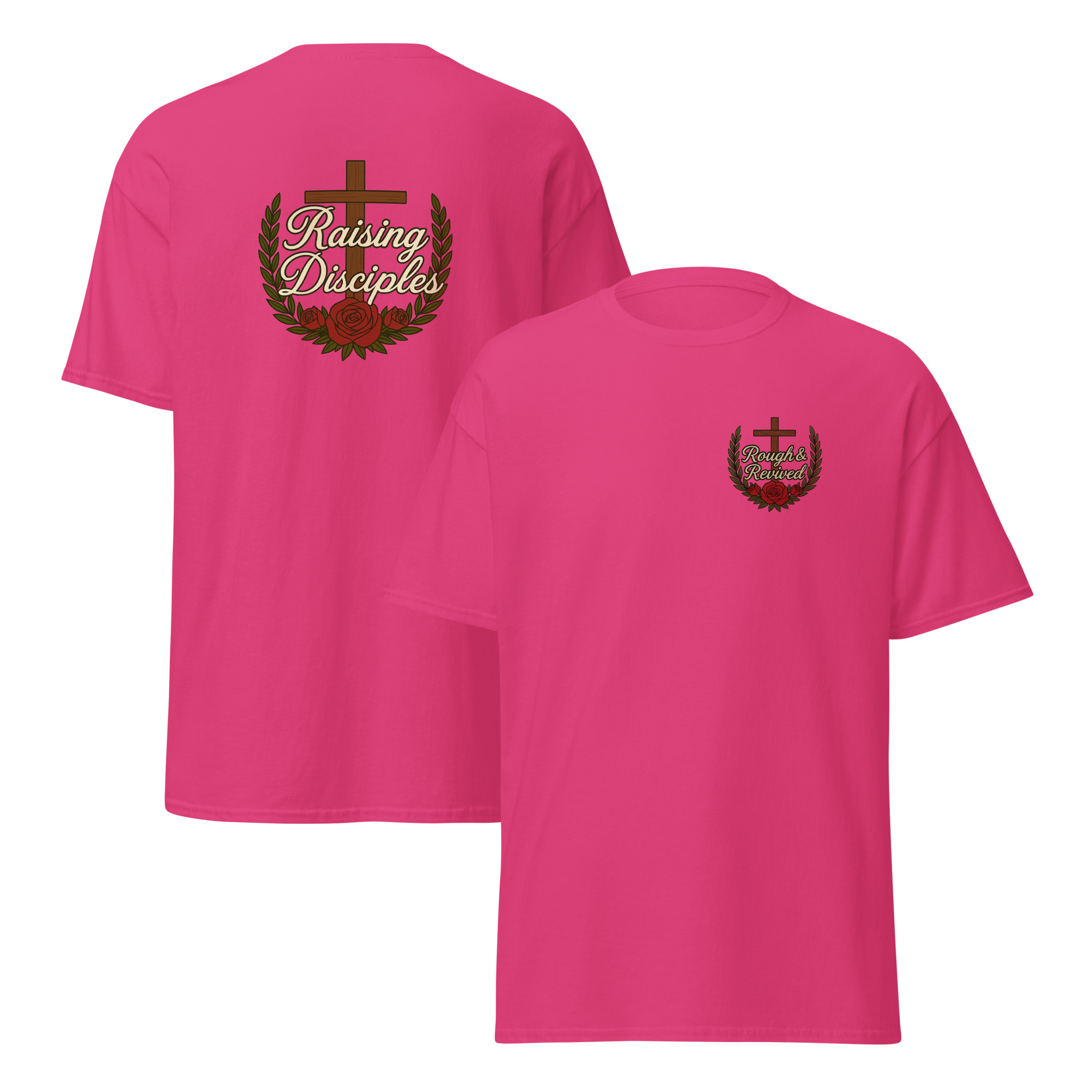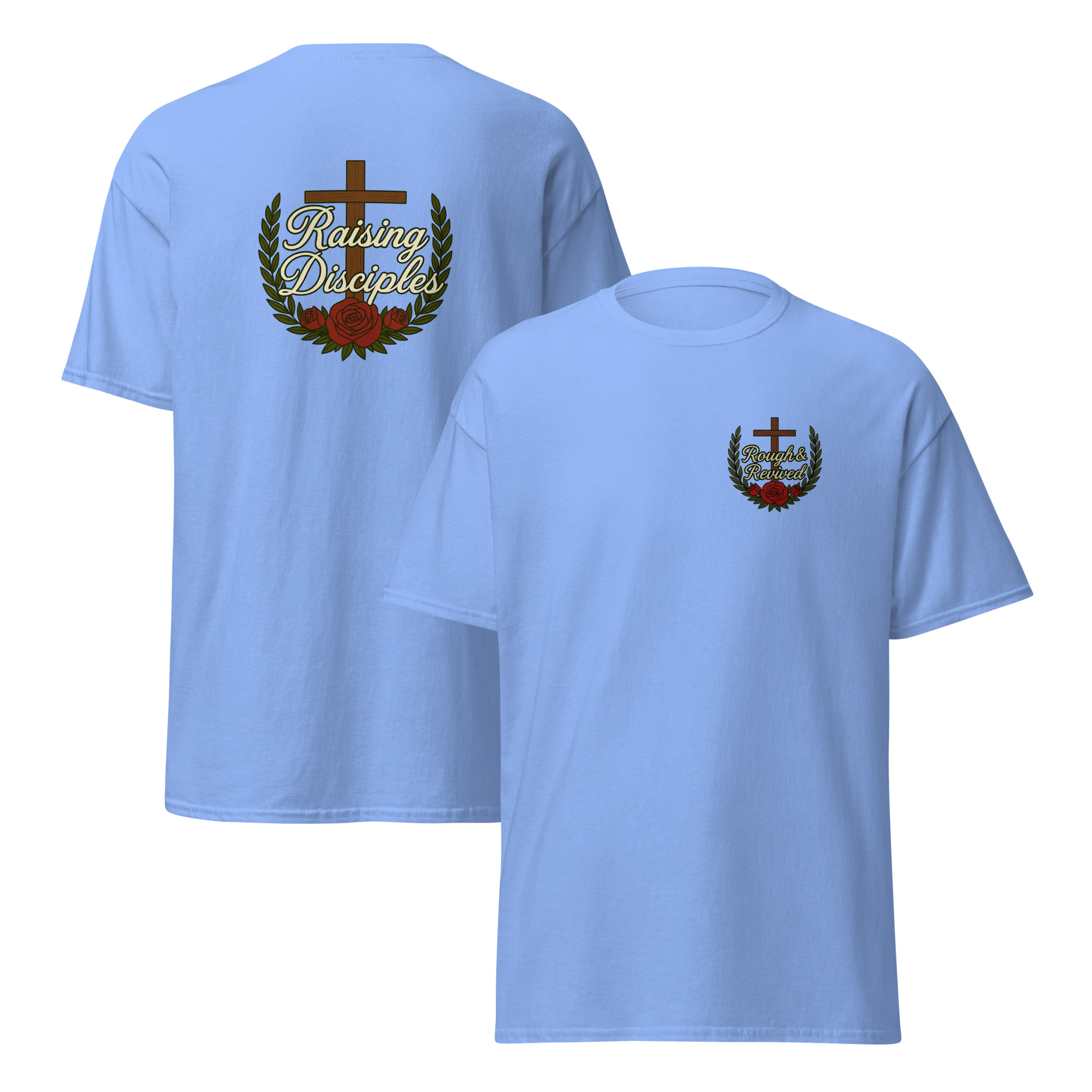 Be the first to review “Raising Disciples Christian T-shirt with Roses & Cross”