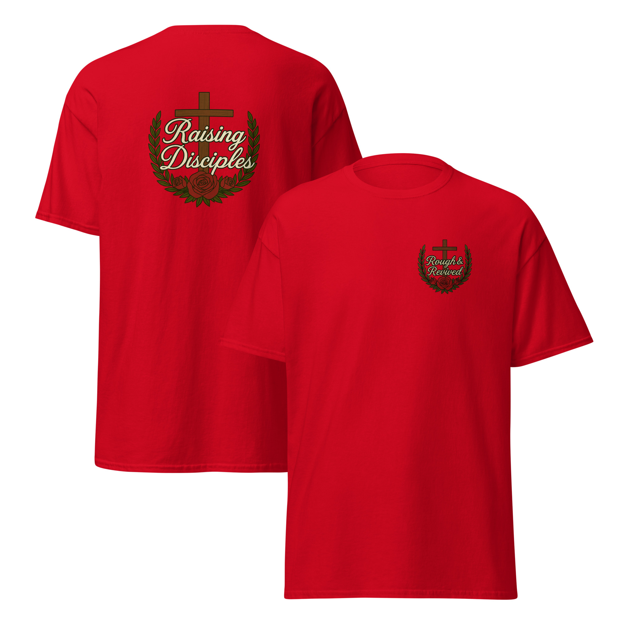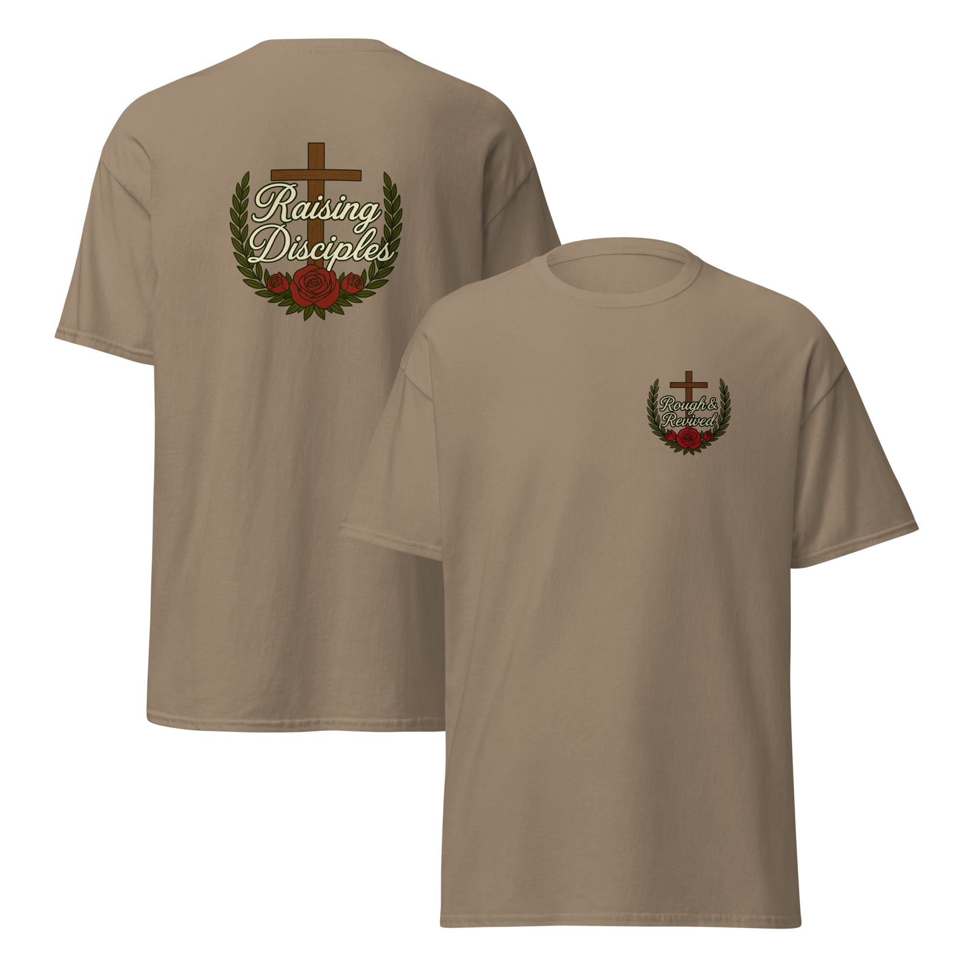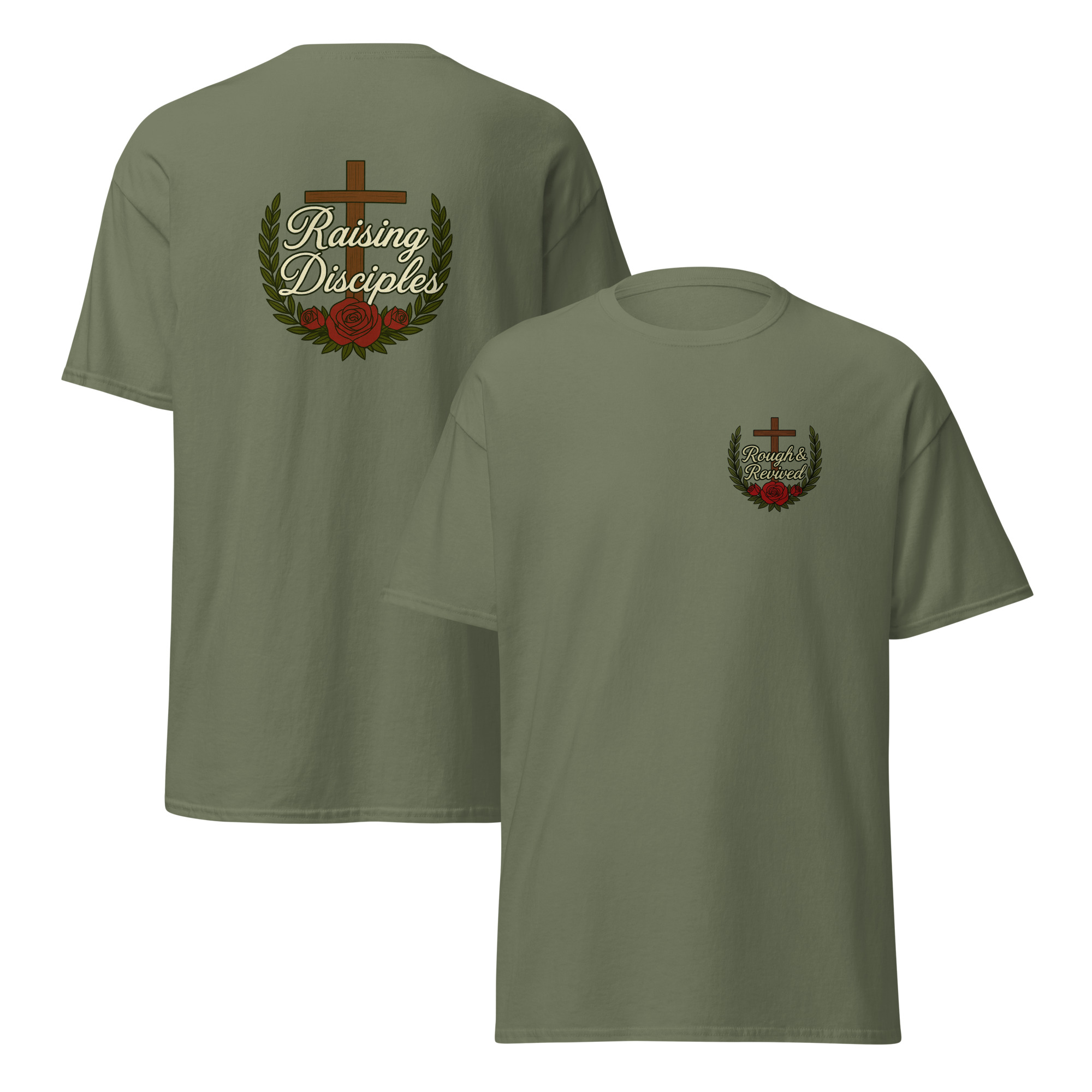 Be the first to review “Raising Disciples Christian T-shirt with Roses & Cross”