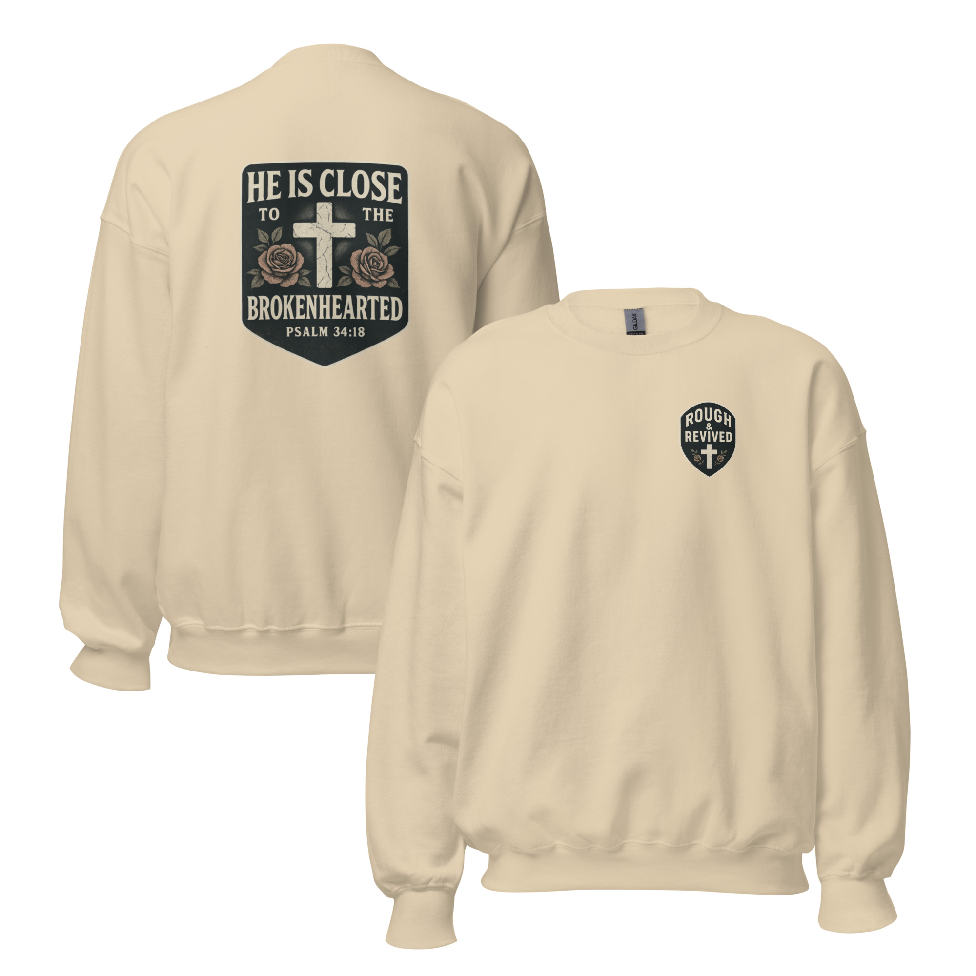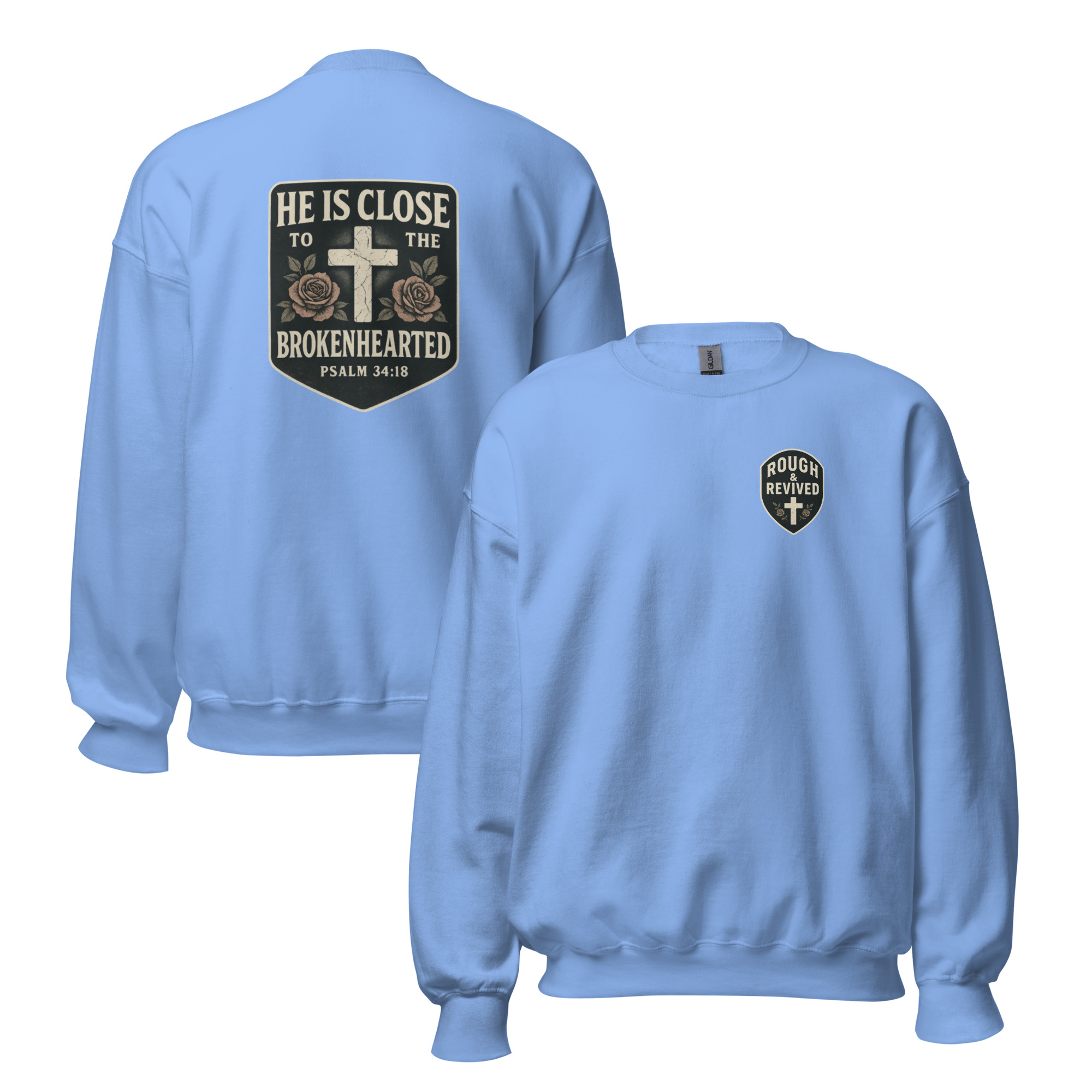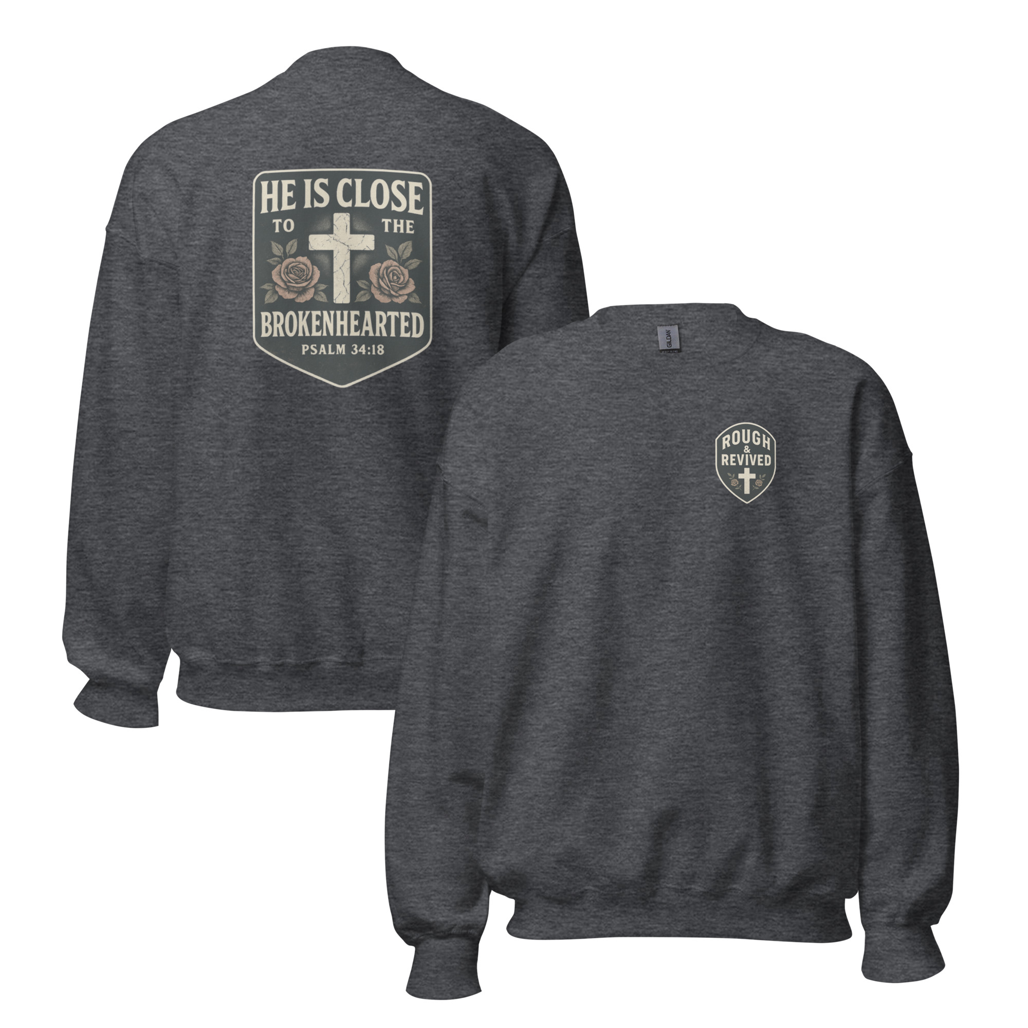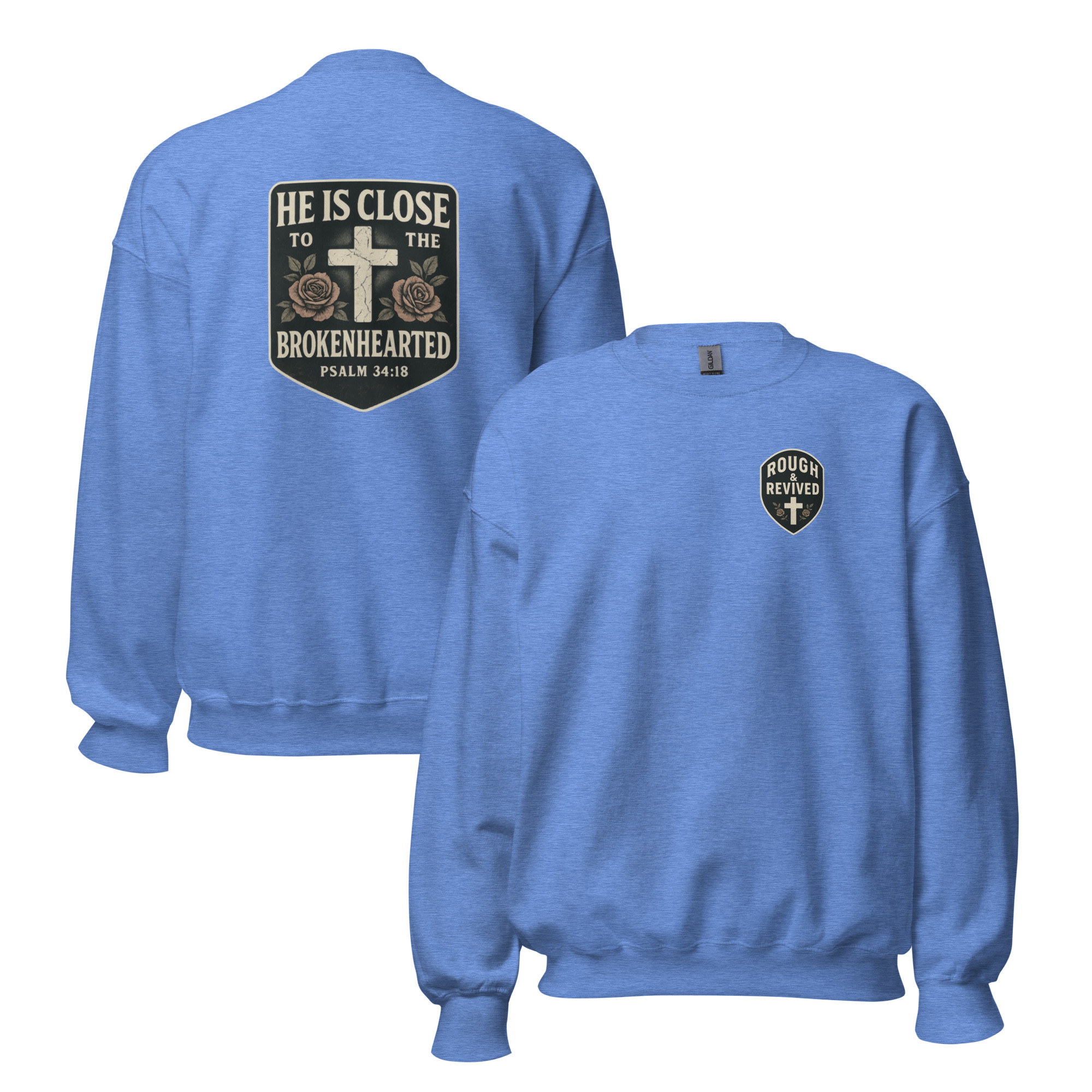Wrap yourself in truth and comfort with this vintage-style Psalm 34:18 “He Is Close to the Brokenhearted” Christian apparel.