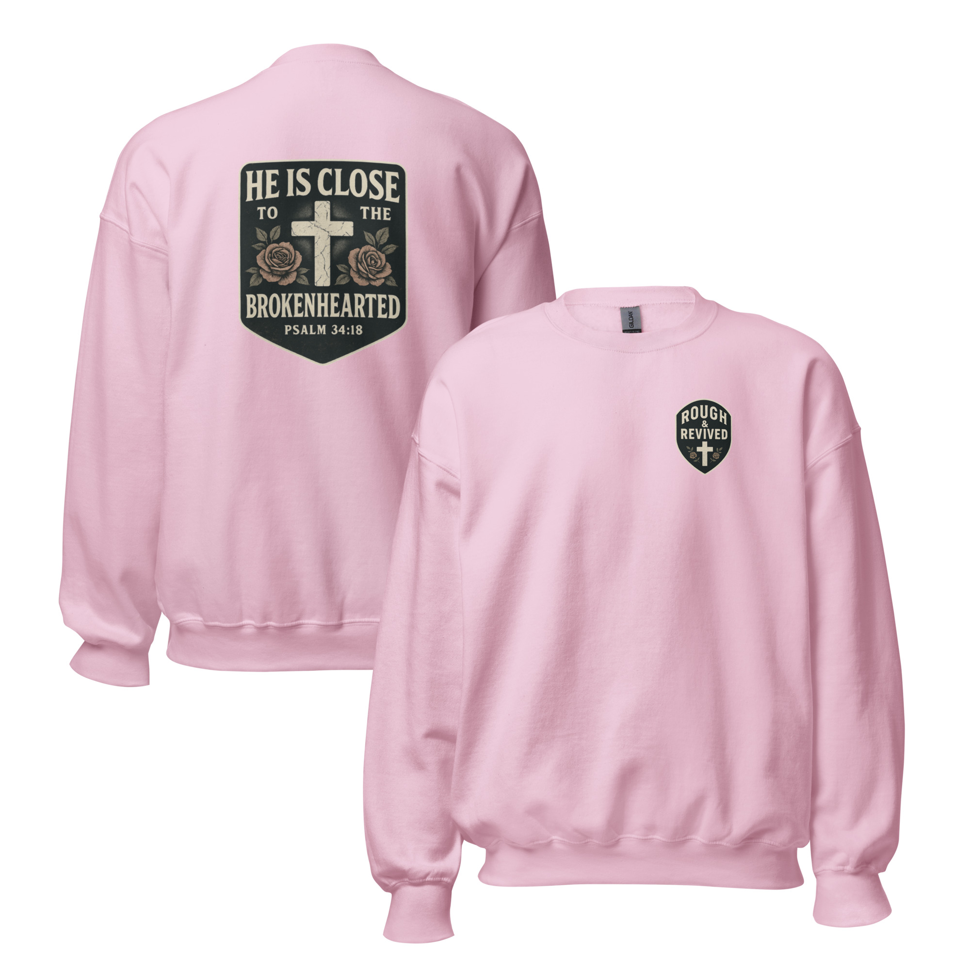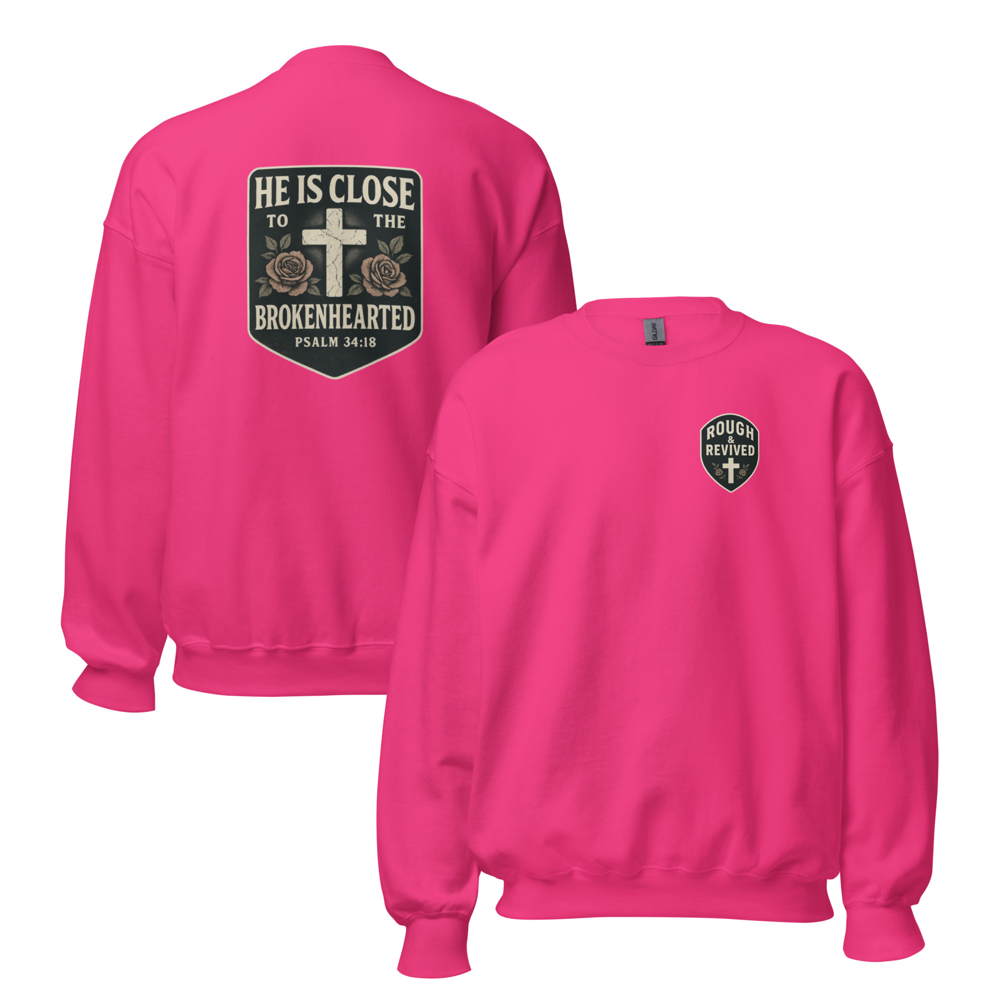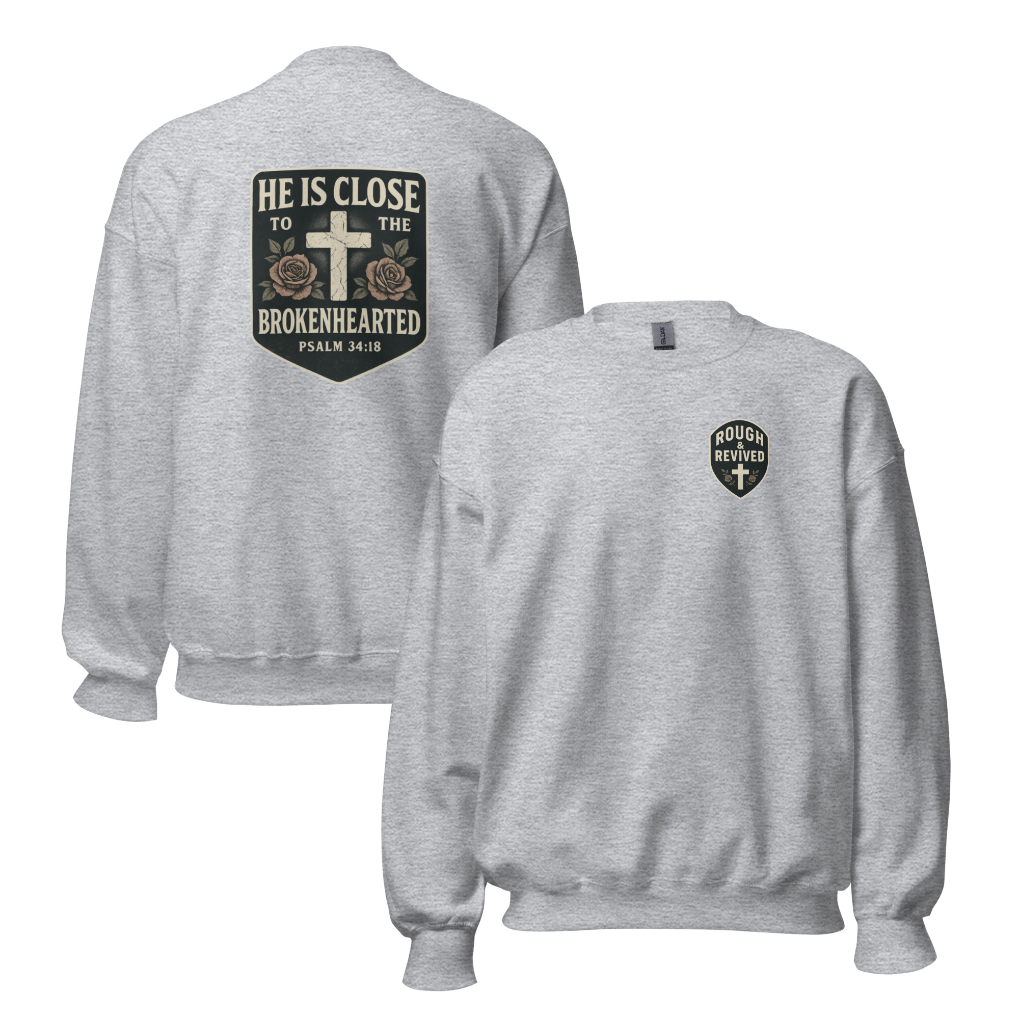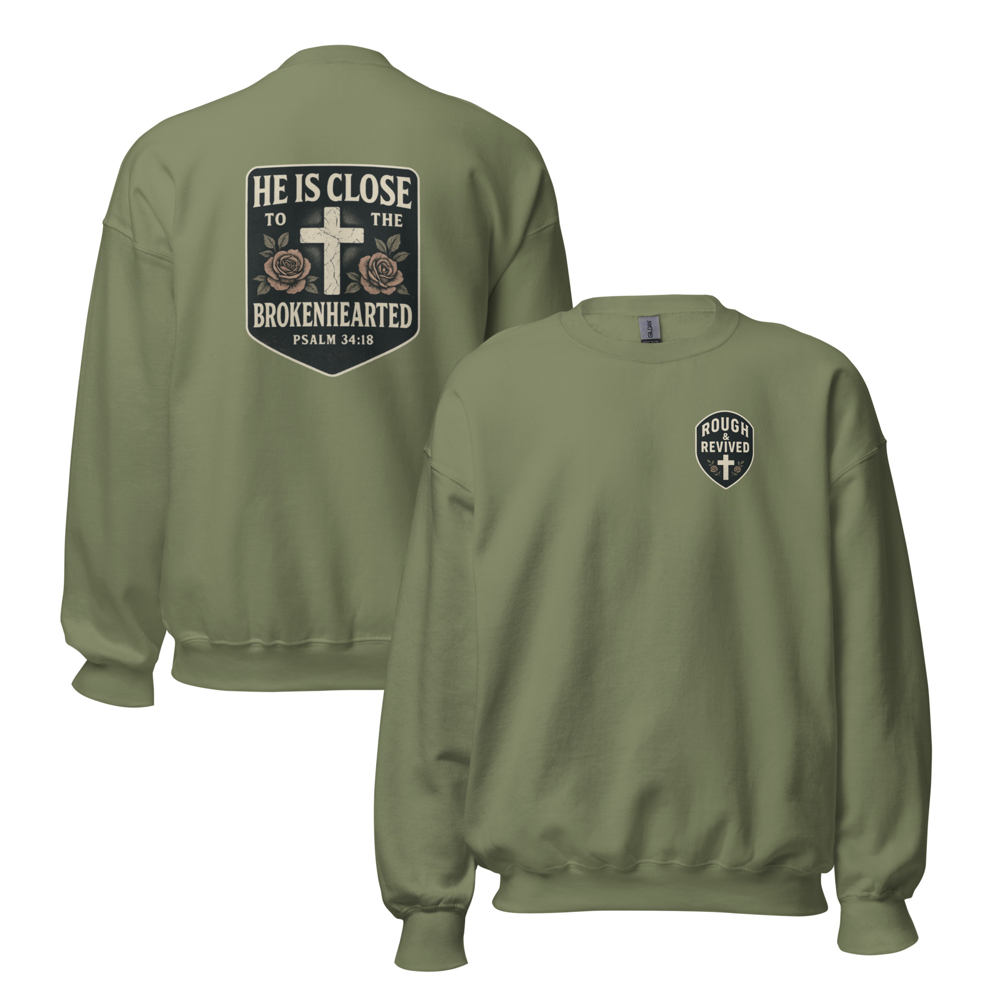 Wrap yourself in truth and comfort with this vintage-style Psalm 34:18 “He Is Close to the Brokenhearted” Christian apparel.